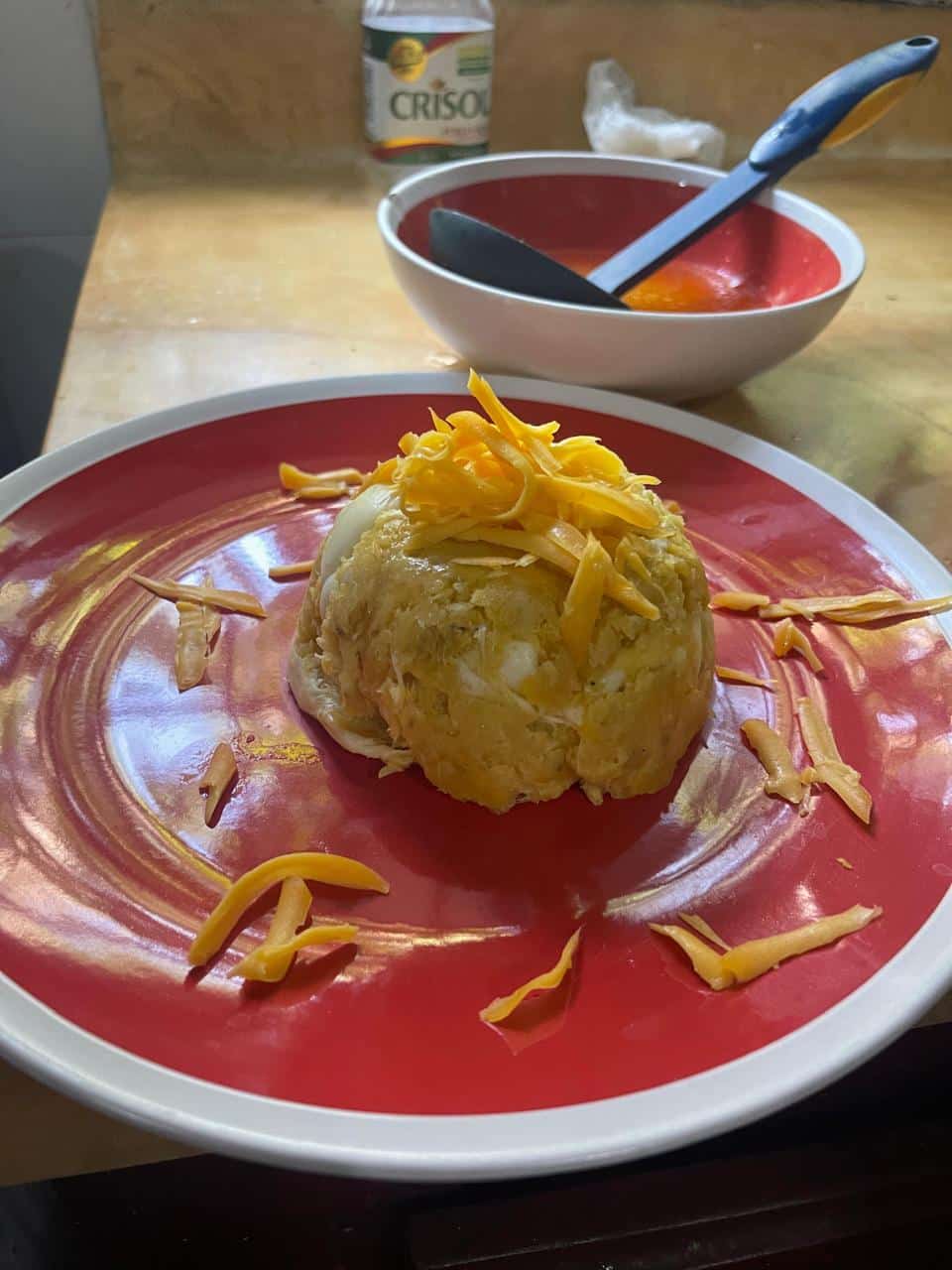 Another staple is mangú, a traditional breakfast dish made from boiled and mashed green plantains. It’s often served with “los tres golpes” (the three hits): fried cheese, eggs, and salami.